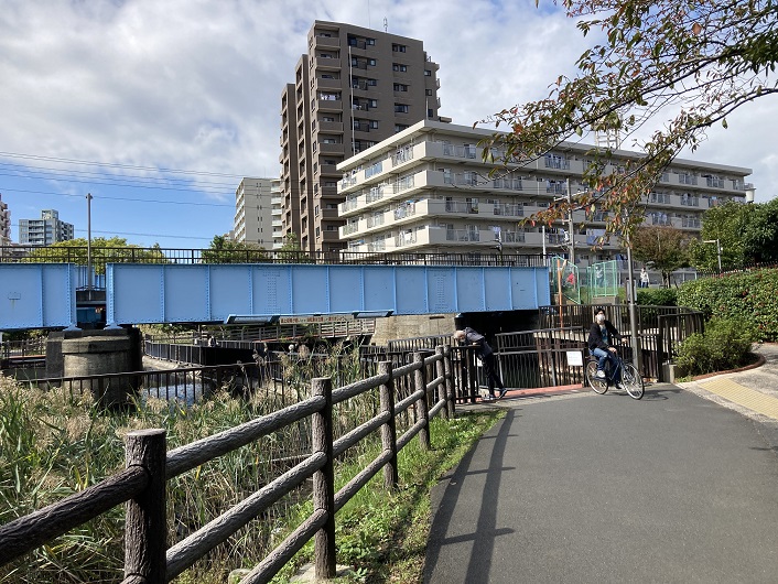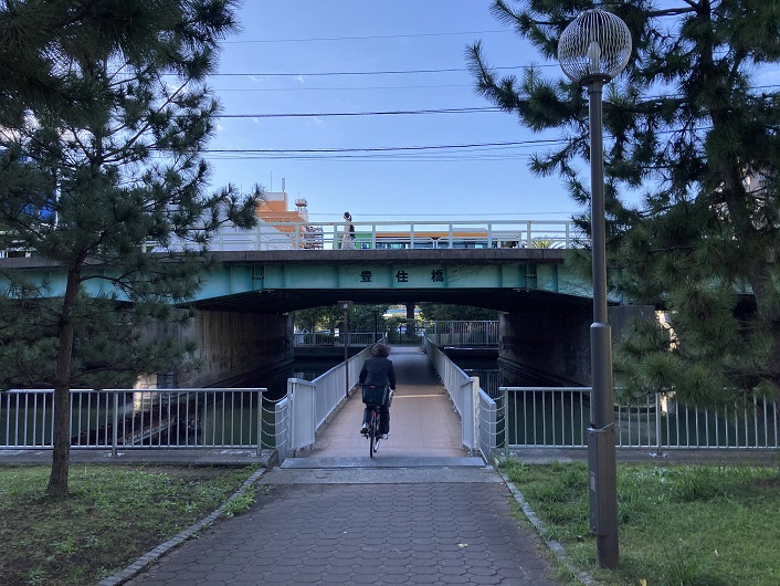 豊住橋で四ツ目通りの下をくぐります。ちなみに、「四ツ目」というのは、竪川に架かる橋を西から数えて四つ目という意味です。