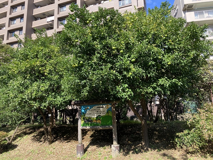 公園には、ふれあいの森・果実の森・科学の森・親子の森などの特色ある7つの森が設定されています。果実の森には何種類かの果実のなる木が植えられていますが、私が今までに実を付けているのを見たのは夏みかんの木だけでした。