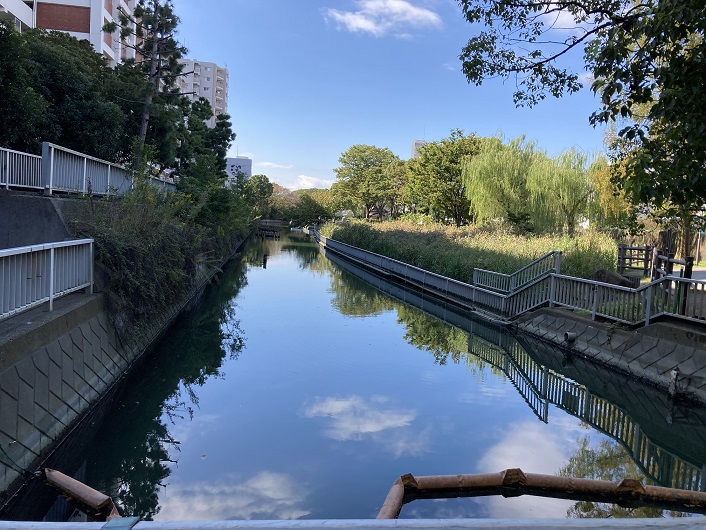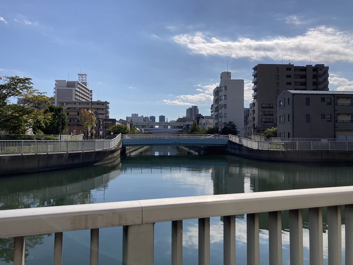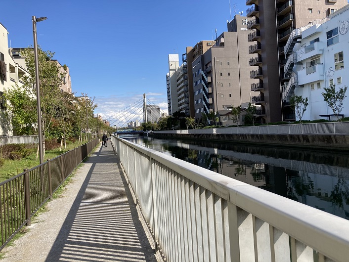 仙台堀川には全区間ではありませんが、川沿いに遊歩道が整備されています。綺麗でとても歩きやすいです。