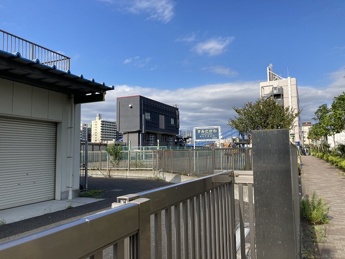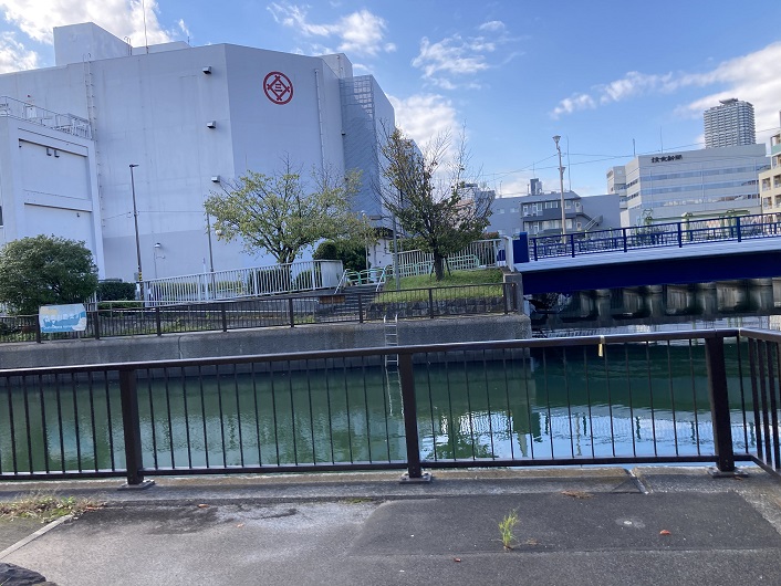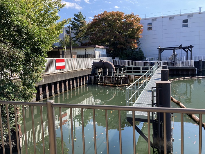 いよいよ隅田川の合流点にやってきました。合流地点の手前には、清澄排水機場が設置されています。仙台堀川水門とは言わないんですね。
