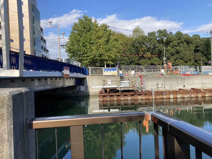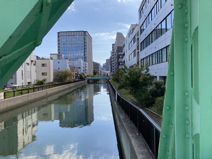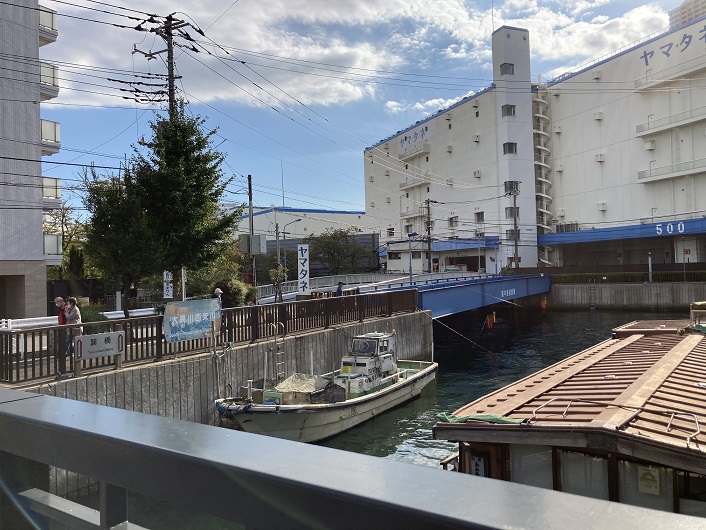 大横川に合流する手前の巽橋周辺には、隅田川が近いこともあって小舟とか屋形船が係留されています。大横川には練兵衛橋が架かっていますが、その横には越中島連絡橋も平行して架かっています。大横川を歩いた時に出会った橋ですが、随分と前のような気がします。
