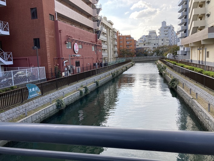 平久川と大横川の交差地点には橋は架かっていませんので、一旦大横川沿いに迂回し、平野橋を渡って平久川の遊歩道に戻ります。
