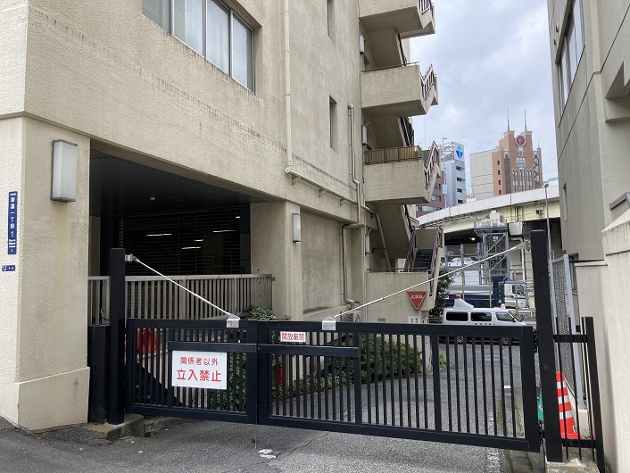 警視庁高速道路交通警察新富分駐所の向かいにある東京都下水道局中部下水道事務所桜橋ポンプ所は桜川跡地に造られて施設のようで、敷地は東西に長く延びています。その先は空き地になっているようですが、立ち入ることはできません。