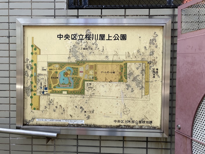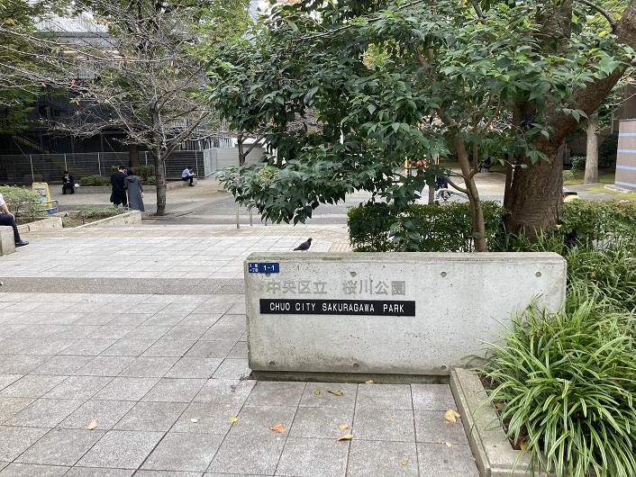 新大橋通りを渡った先は東西に細長い桜川公園に繋がっています。公園自体が桜川の跡地に造成されたような感じです。