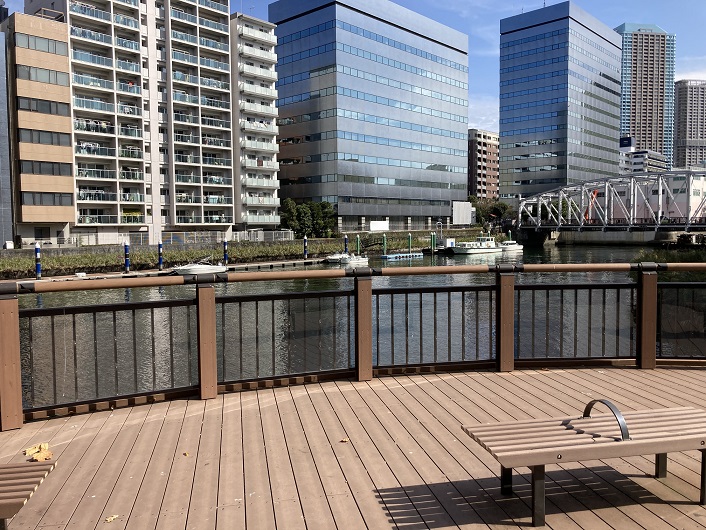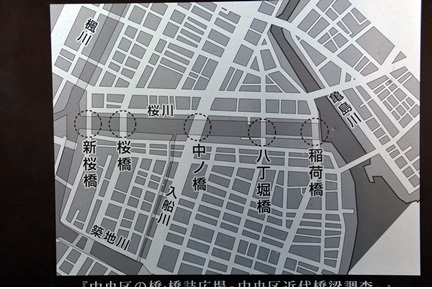 亀島川との合流地点であったと思われるところには小さな広場が造られています。亀島川を歩いた時は、まさかこんなところで失われた桜川が合流していたとは夢にも思いませんでした。桜川の次は隅田川を下って明石堀を歩きます。