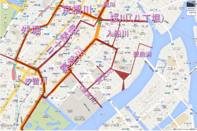 三十間掘川の東側を流れていたのは築地川かな?