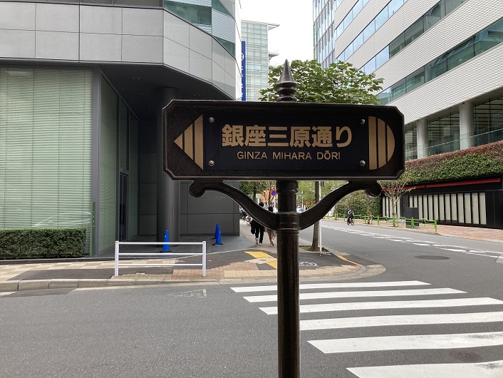 銀座三原通りを歩きます。三原通りの道路名は、三十間堀川に架かっていた三原橋に由来します。ちっとも知らなかったです。