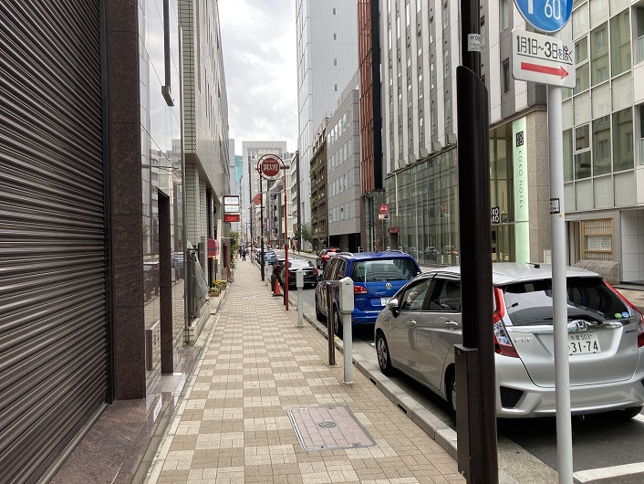 事前の情報収集で、三十間堀川の跡地に細長いビルがあるとは知っていたのですが、場所までは調べていませんでした。左側の写真に写っているビルかな?