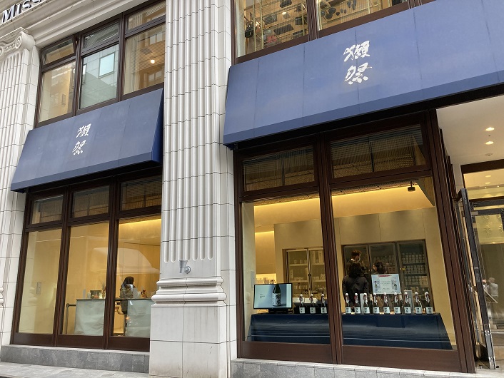 ミレニアム三井ガーデンホテルの三原通りを挟んだ向かいに銀座ミスパリのビルが建っています。その1階に獺祭ストア銀座店がテナントとして入居しています。獺祭も遂に銀座進出ですかぁ。入口の横には純米大吟醸獺祭の菰樽(単なる置物?)が鎮座しています。試飲用でしょうか、横のテーブルにはお猪口ではなく、ワイングラスが置かれていますね。ちょっと店内に。。。とは思ったのですが、お散歩用のスニーカーの格好では恥ずかしすぎますね。蝶ネクタイにタキシード着用でないと。