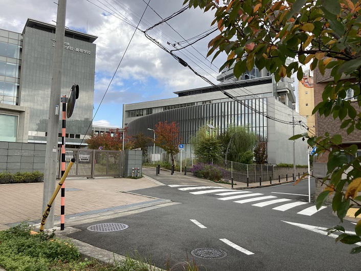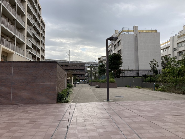 新幹線の高架を越えた先には立正中学校・高等学校の敷地が拡がっています。その敷地の間を割るように緑道が延びています。つまり、校舎と校舎の間を緑道が通っているのです。今まで歩いた川の中では珍しい光景です。学校の正門横に出てきた緑道はそのまま煉瓦敷の歩道に続いています。学校は2013年に開設されたそうで、周辺も含めて全てが真新しい風景です。