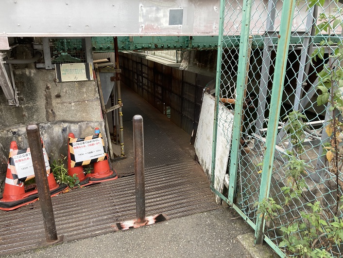 天井部分が線路むき出しなので、電車の通過時は相当な恐怖感を味わうことでしょう。私は窮屈な姿勢ながら全速力で抜け、幸いにも電車の通過には遭遇しませんでした。でも、電車の轟音と振動を体験しなかったのはちょっと残念かも。
