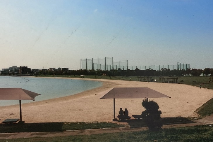 せっかくなので、大森ふるさとの浜辺公園の突端を内川の終点としましょう。公園にはかっての大森海岸の浜辺を再現した綺麗な砂浜が造られています。ちょっと見、海外のリゾート地を思わせますね。