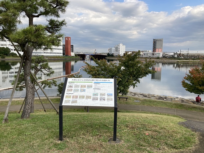 浜辺橋手前に公園の案内板が立っていました。