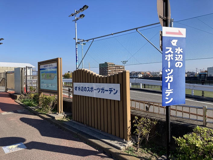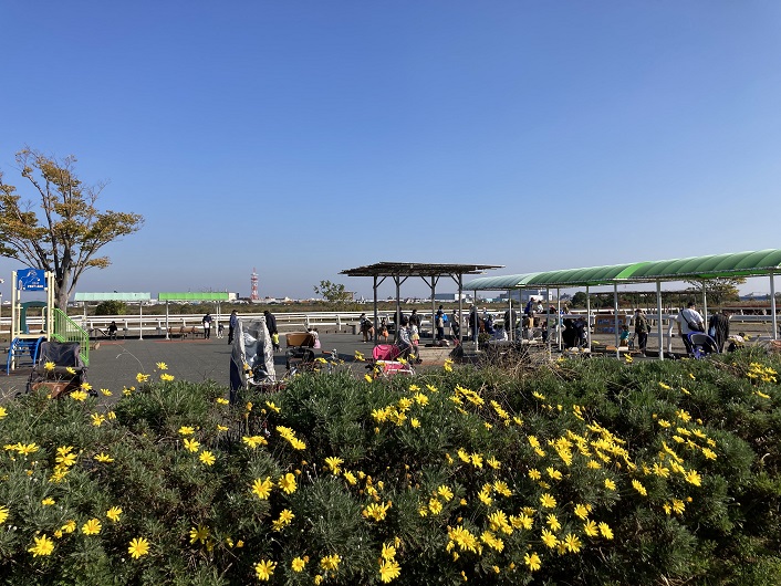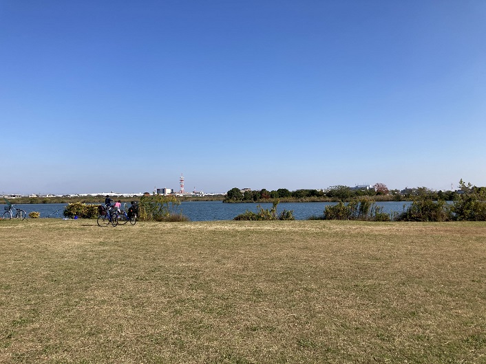 ポニーランドと隣接する広場の先に、江戸川が分岐する陸地の突端が見えます。島のように見えますが、江戸川放水路が開削される前は船橋と陸続きだったのでしょう。
