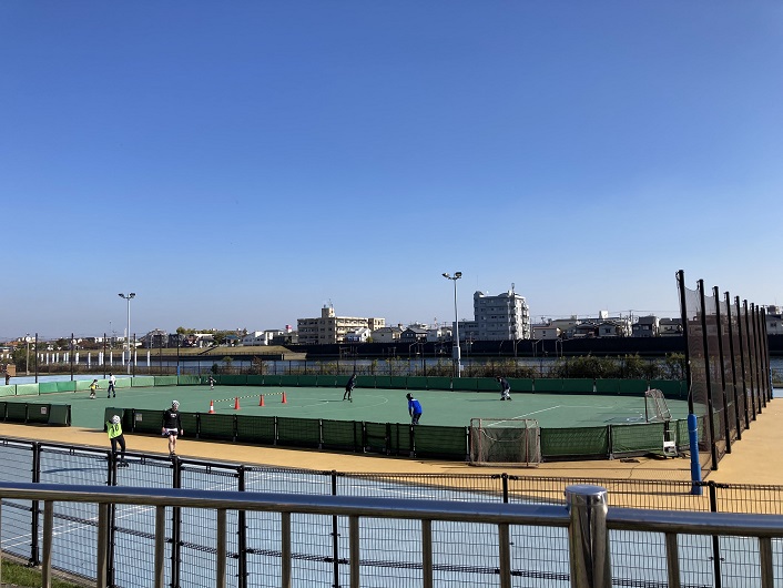 川幅の拡がったところには運動施設も造られています。ここには珍しいローラーコートなる施設もあります。ローラースケート専用のコースって初めて見ました。