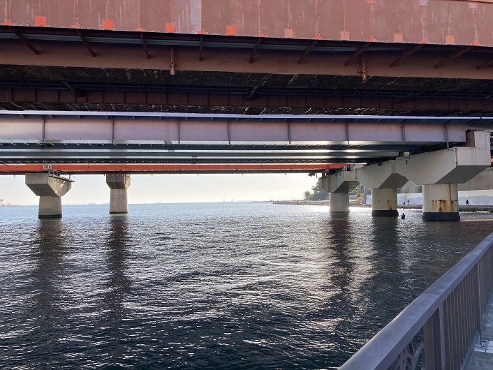 旧江戸川に架かる最後の橋である舞浜大橋が見えてきました。河口はもうすぐです。