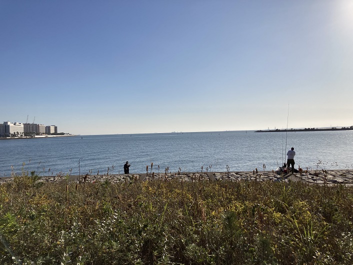 葛西臨海公園の東端にやってきました。ここから先は東京湾です。今日は快晴で、海と空が溶け合いそうです。