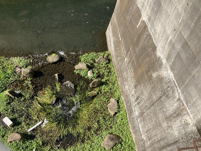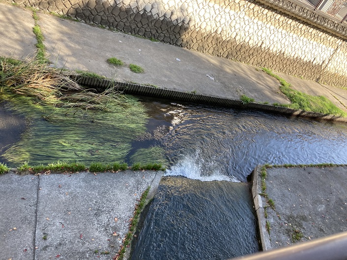 仙川には、勝渕神社付近より下流に豊富な湧水群があります。この橋の下よりわき出ている水は、水の少ない上流部の清流復活のため、水循環施設によって「仙川樋口取水場」よりここ野川宿橋まで約1.6kmをポンプにより送られてきているものです。仙川が市民の皆様にとって憩いの場であるとともに、水鳥や魚たちも安心して棲めるよう、川を守り育てましょう。