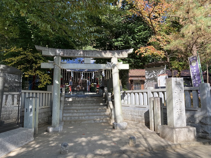 400mほど歩きますと、禅林寺というお寺の横を通ります。境内には玉川上水に入水した太宰治の墓があります。鴎外を尊敬していた太宰自身の希望により、墓は元あった寺院の被災により同寺に移転してきた森鴎外の墓の向かいに建てられました。その禅林寺の隣には社地一万坪の八幡大神社が鎮座しています。明暦三年(1657年)の明暦の大火(振袖火事・丸山火事とも呼ばれています)の後、神田連雀町(現・千代田区神田須田町・神田淡路町周辺)の住民が代替地としてこの地への移住を命じられ、新田開拓して下連雀村となりました。その後、下連雀村の名主達が氏神社の創建を幕府に願い出て許可され、八幡大神社が創建されました。