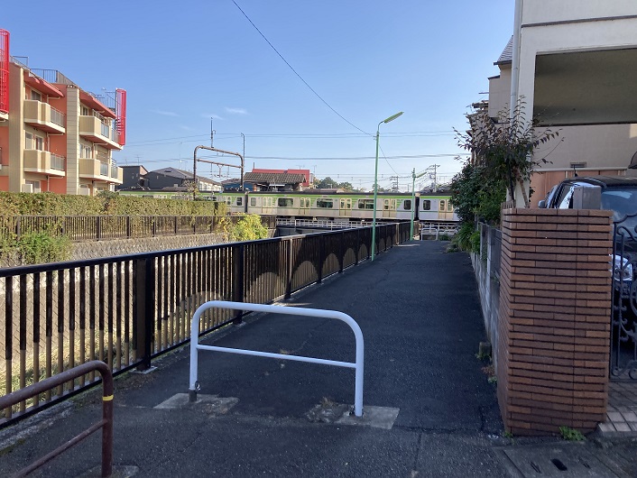 甲州街道の少し先で仙川は京王線の高架下を流れます。普通だったら遠くの踏切を渡って迂回するところですが、京王線の場合は親切にも高架下に人道のトンネルを通してくれています。歩行者には大助かりです。