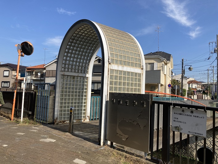 仙川には沢山の橋が架かっていますが、祖師谷中橋はかなりユニークな外観をしています。この祖師谷中橋は人道橋で車は通れません。平成四年に架け替えられた際に世田谷区で計画された「仙川6橋の橋作りプロジェクト」の一つとして架けられたとのことです。まぁ、人道橋なのでこのようなデザインも受け入れられたのでしょう。ガラスブロックのアーチは急な雨が降った時に雨宿りになる?私なら走って家に帰りますけどね。