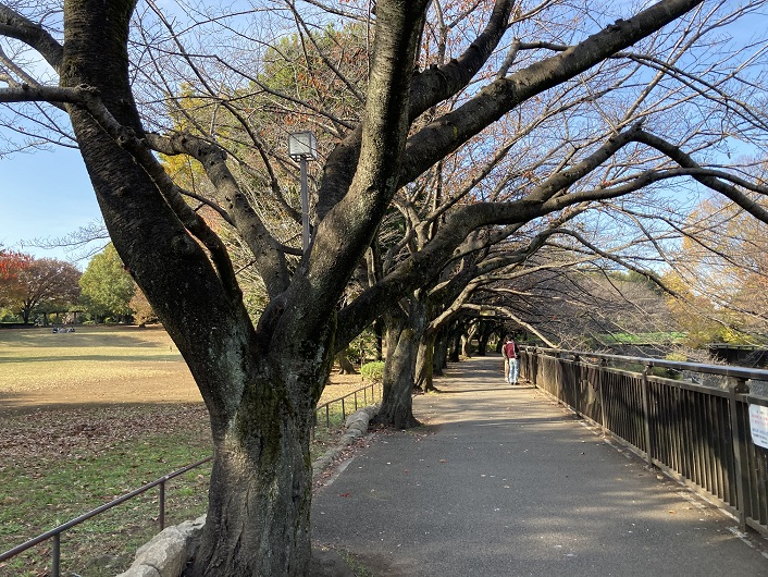 仙川は祖師谷公園の中を流れていきます。遊歩道の傍らには桜の並木が続いています。
