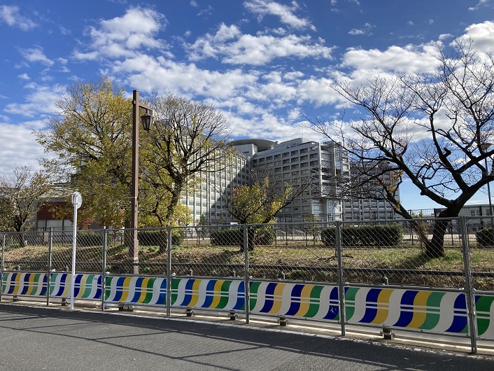 裏門堰親水水路の中程からは東京拘置所の巨大な建物の全景が見られます。何だかニューオオタニホテルの外観に似ていますね。泊まりたくはありませんが。