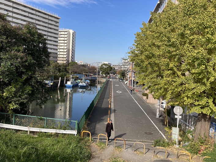 暫く歩くとガス橋が見えてきます。ガス橋の名称は、東京ガスが鶴見製造所で製造した大量のガスを東京に供給するために多摩川に架けられたことに由来します。橋の下部には2本のガス管が通っています。昭和六年(1931年)9月に「瓦斯人道橋」として開通し、昭和十一年(1936年)にガス管が増設されました。戦後は周辺の橋が増大する交通量に対応しきれなくなり、昭和三十五年(1960年)に現在のガス橋が完成して車両の通行が可能となりました。尚、ガス橋の北詰にはキヤノンの本社があります。ガスは使わないでしょうに、何でここに本社を置いたのでしょうか?