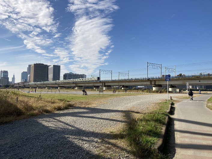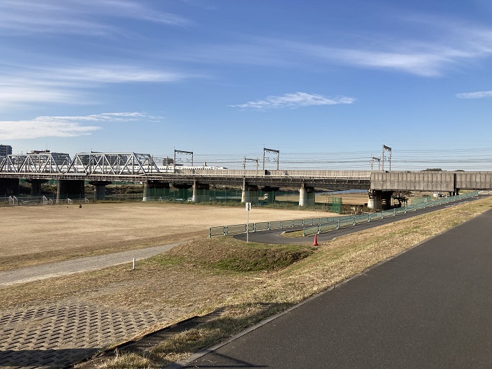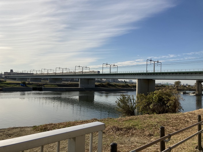 東海道新幹線が通る多摩川橋梁が見えてきました。鉄橋を通過している新幹線は何系というのでしょうかね?