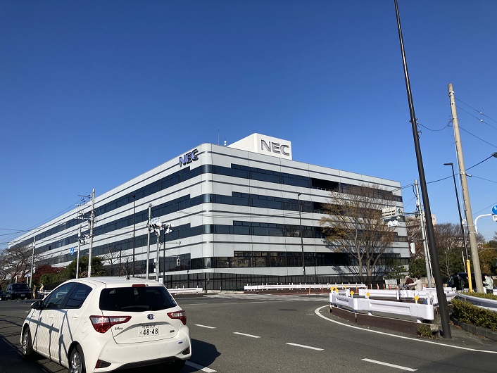 多摩川沿いには新聞を印刷する工場の他に、企業の研究所なども立地しています。ひときわ目立つ巨大なビルは、NEC中河原技術センターです。NECは宇宙開発事業における日本のトップメーカーで、ここはその拠点になっています。日本初の人工衛星「おおすみ」や小惑星探査機「はやぶさ」の開発もここで行なわれたそうです。