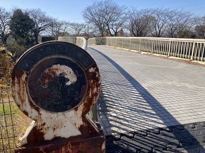 残堀遊歩橋と書かれた嬌名は錆び付いて判読も困難です。床板はそんなに古くはないのですが、プレートに描かれている絵らしきものと文字は解読不能です。