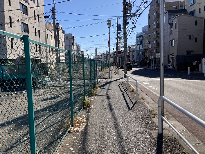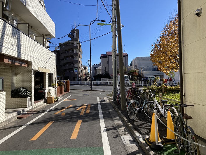 山手通りを迂回して反対側に回りますと、路地が途切れた方向にまた別の路地が延びています。