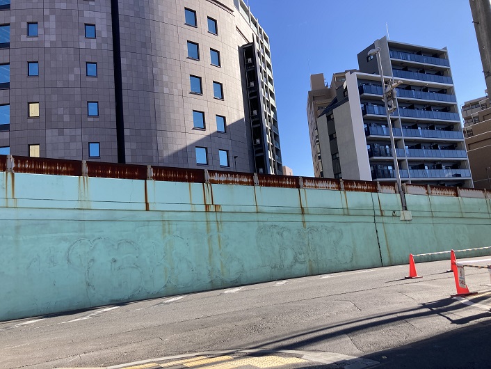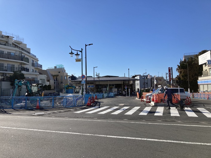 三田用水の流路は、かって用水に架けられていた橋の痕跡などによって、都道420号鮫洲大山線に沿っていたものと思われます。現在、都道420号鮫洲大山線は拡幅工事の真っ最中で、地下化された小田急線跡と一体になって整備が進められています。東北沢駅も平屋のお洒落な駅舎に建て変わっています。