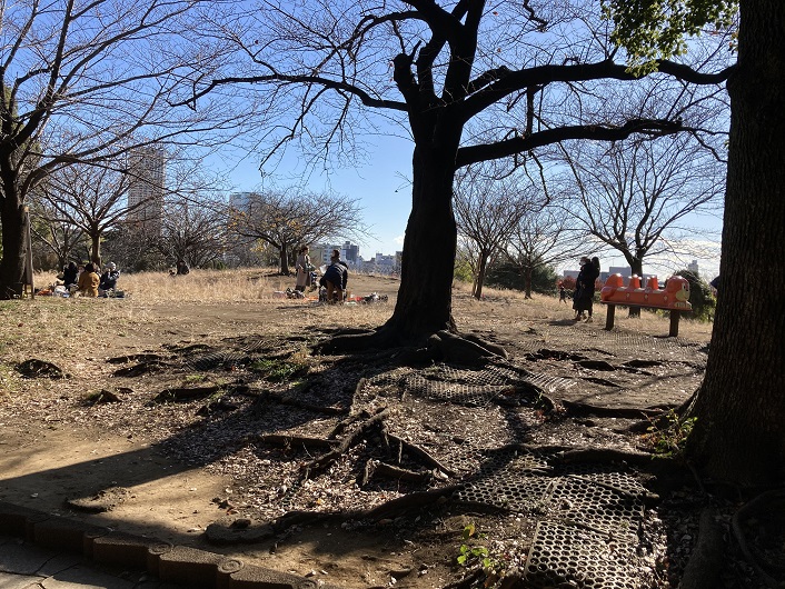 青葉台の高台を進みますと、旧山手通りと合流する手前に西郷山公園があります。目K川に向って続く斜面に設けられた公園です。見晴らしの良い広場があるので、いつも子供連れのママ友で賑わっています。