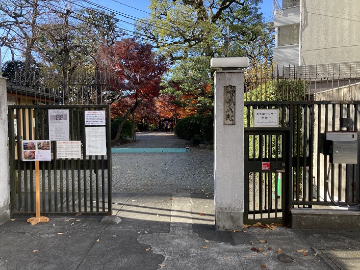デンマーク大使館の隣りに旧朝倉家住宅が残っています。現在は一般公開され、往時の栄華が偲ばれます。入口の横に旧朝倉家住宅の案内板が立っています。高台なので夕陽に沈む富士山の山容も拝めたことでしょう。