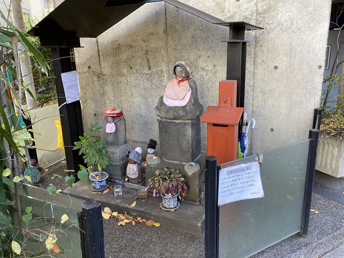 旧朝倉家住宅の向かいに小さな地蔵尊が祀られています。