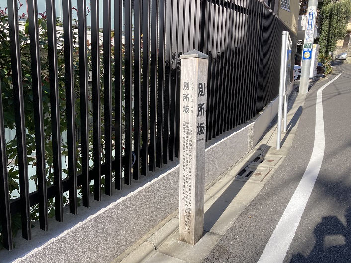 この辺りの地名であった「別所」が由来といわれる。別所坂は古くから麻布方面から目黒へ入る道としてにぎわい、かつて坂の上にあった築山「新富士」は浮世絵にも描かれた江戸の名所であった。