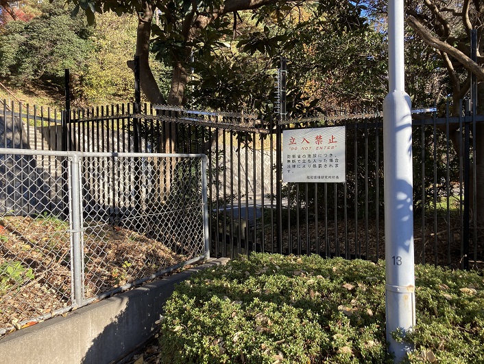 駒場キャンパス沿いに通る都道は東大裏交差点で山手通りに合流します。山手通りを少し先に進みますと、駒場キャンパスの外周フェンスに沿って歩道の端にコンクリート製の橋台のような構造物があります。露出しているのは100m位の区間なのですが、駒場キャンパスの敷地内から延びているように見えます。また、その先は山手通りから右に逸れて住宅地の中に消えています。橋台のような構造物の上部には取っ手らしきものが付いていますので、開閉して構造物の中に入れるようになっているようです。してみると、これは三田用水が流れていた水路跡のようにも思えます。