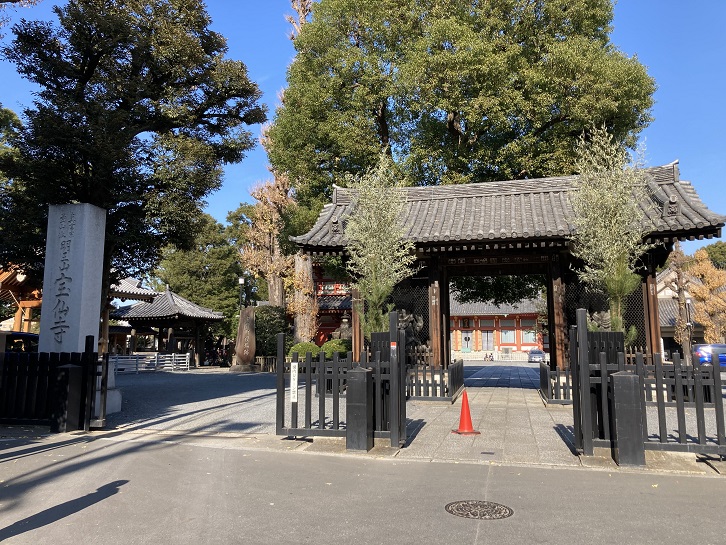 中野坂上交差点で山手通りと交差します。今は道路幅が拡がり、歩道も広々としている山手通りですが、都電14系統が走っていた頃はどんな景色だったのでしょうか?交差点先の右手に宝仙寺の参道が延びています。宝仙寺は真言宗豊山派の寺院で、中野区では屈指の広大な寺院であると共に、千年近くの歴史を誇る古刹です。宝仙寺は寛治年間(1087年から1094年)に源義家によって現在の杉並区・阿佐ヶ谷で創建されました。本尊は義家が後三年の役の際に護持していた不動明王像で、良弁作と伝えられています。室町時代の1429年に現在の位置に移転しました。江戸時代には優れた僧を輩出し、歴代の将軍から厚い保護を受け発展しました。将軍家が鷹狩りに出た際の休憩所としても利用されました。著名人の葬儀・告別式も多く執り行われることでも知られています。