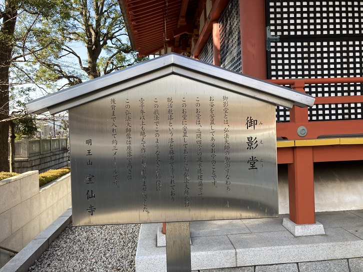 御影堂とは、寺院の中で宗祖などの御影を祭っている建物のことです。宝仙寺は真言宗豊山派の寺院ですから、宗祖は弘法大師空海となります。