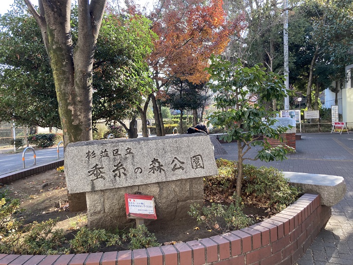 蚕糸は「さんし」と読みます。文字通り、蚕が紡いだ糸という意味になります。明治維新以降、日本が近代化への道を進んだ際、軽工業の中心は絹織物産業でした。ここには蚕糸試験場が置かれ、蚕糸科学技術研究の最先端の施設でした。その広大な敷地跡に造られたのが蚕糸の森公園です。
