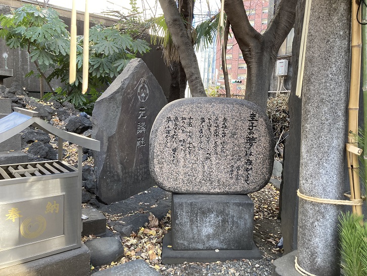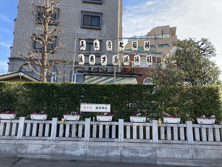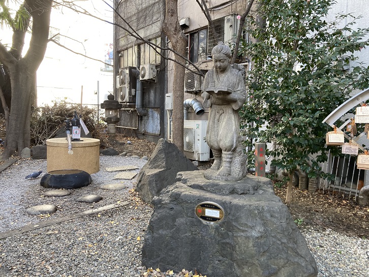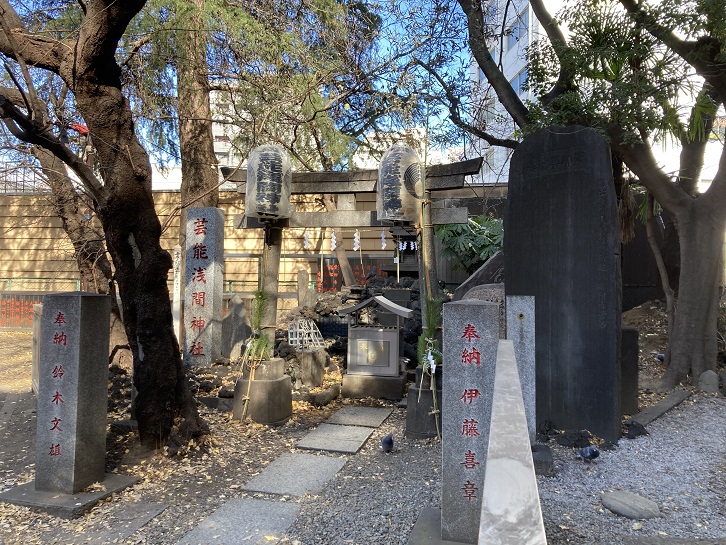 また、境内の隅っこに芸能浅間神社が鎮座しています。宇多田ヒカルの母親として知られる藤圭子の歌碑「圭子の夢は夜ひらく」もこの社の隣に建っています。