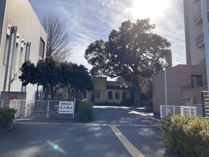 第八機動隊の敷地と余丁町小学校の敷地は隣り合っています。日本一安全な小学校といえるでしょう。それにしても、余丁町小学校の時計台は風格がありますね。