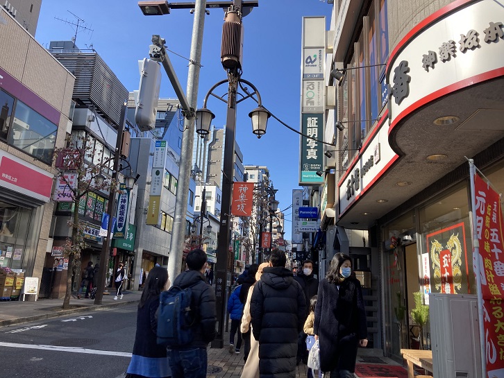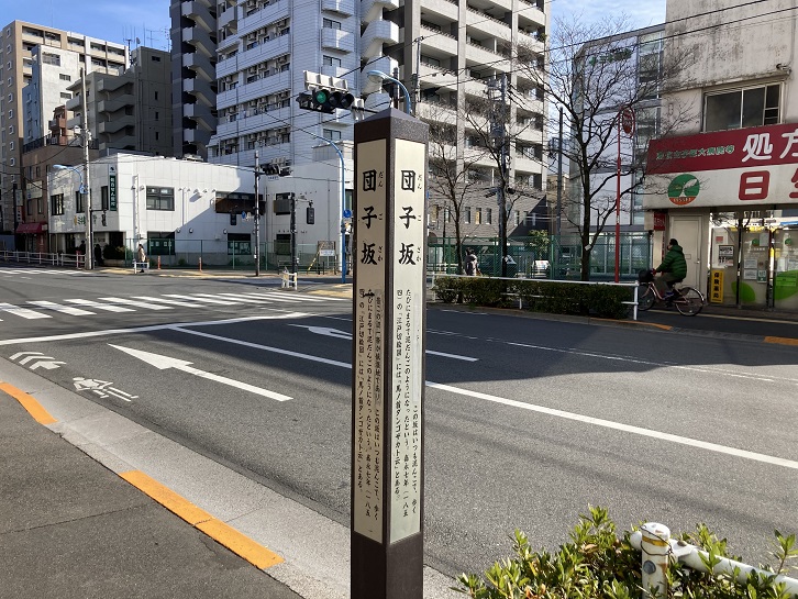 抜弁天通りが大久保通りに合流する手前に団子坂があります。