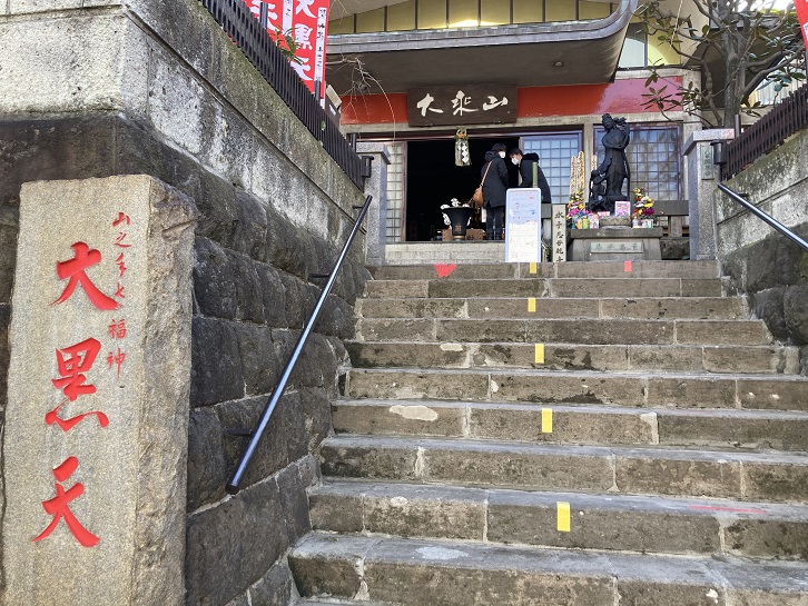 新宿山ノ手七福神のひとつで、日法上人の作、慶長三年(1598年)に甲斐国身延山より移されたと伝えられる。高さ十二センチの木造の立像で、大黒頭巾をかぶり小槌と大袋を持ち、台座に乗る通規の様式だが、江戸時代のものと異なり、微笑面ではなく厳しい表情をしている。室町時代の作と考えられ、度重なる火災にも焼け残ったことから「火防せ大黒」として、また「新宿山ノ手七福神」の大黒天として崇敬されている。