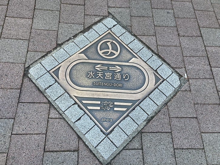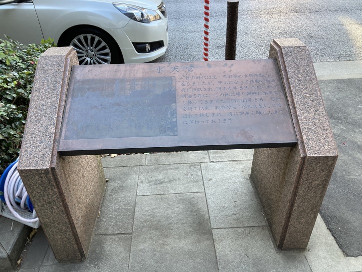 水天宮が見えてきました。交差点の近くに案内板が置かれています。