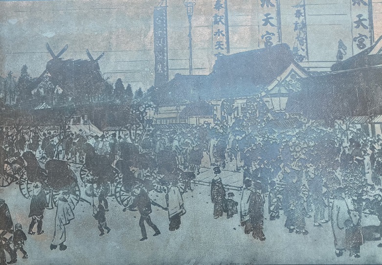 右上の額「日本橋區長谷川町守護神 三光稲荷神社」は神田神社社司 平田盛胤氏の揮毫である。