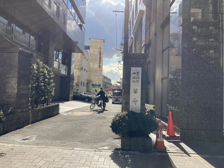 築地四丁目交差点から続く築地場外市場商店街の「もんぜき通り」は、2017年8月3日に火災が発生して7棟計935平方メートルが焼失しました。その後復旧が進み、今では新大橋通りに面した店舗は殆ど営業を再開しています。ところで、「もんぜき」という名前は、築地本願寺に因んでいます。門跡橋交差点脇にある「門跡橋の親柱」の案内板にその経緯が書かれています。