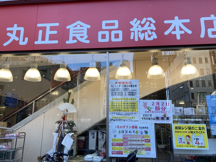 丸正の窓硝子に節分の告知が貼ってあります。2021年の節分は2月3日ではなく、2月2日です。節分はその名の通り、季節の分かれ目の日となります。節分は立春の日の前日となるので、立春の日がずれると節分の日もずれることになります。なぜ立春の日がずれるかといいますと、閏年と同じで、1年を二十四節気に当てはめて定期的な運用をしようとすると、年毎に少しずつ誤差が出てきてずれが生じるわけです。その調整のために、2021年は2月3日が立春になりました。ちなみに、2021年と同じように立春の日が2月3日になったのは明治三十年(1897年)で、今年はそれ以来の124年ぶりとのことです。そして、昭和五十九年(1984年)は逆に立春の日が2月5日だったために、節分が2月4日となりました。そうでしたっけ?