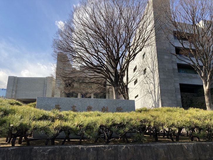 国立劇場に隣り合って、最高裁判所の角ばった巨大な建物が聳えています。現在の庁舎は建築家岡田新一によって設計され、昭和四十九年(1974年)に竣工しました。建物は地下2階・地上5階・延べ53,923uで、7つの棟で構成され、スペースウォールと呼ばれる二重壁によって結合するという、これまでに例を見ない構造になっています。当時、剛構造の建物で振動解析したのはこの最高裁判所庁舎が初めてでした。外壁と内壁は御影石貼りになっていて、なるべく白い御影石を求め、茨城県の稲田石が使用されました。石工事は建築工事費の20%を占め、効率的に石積みする新工法が開発されました。使用した石の延べ総面積は全体で7万u近くに及びます。